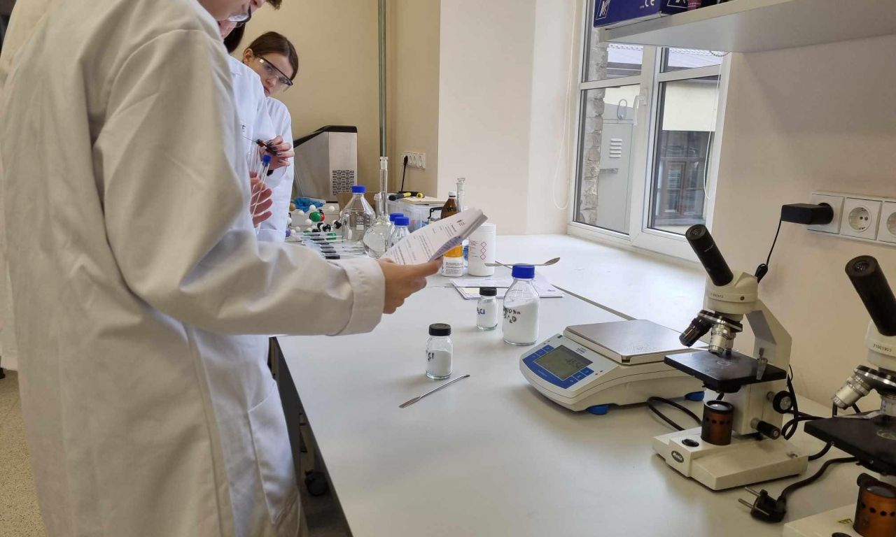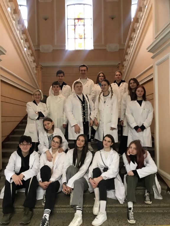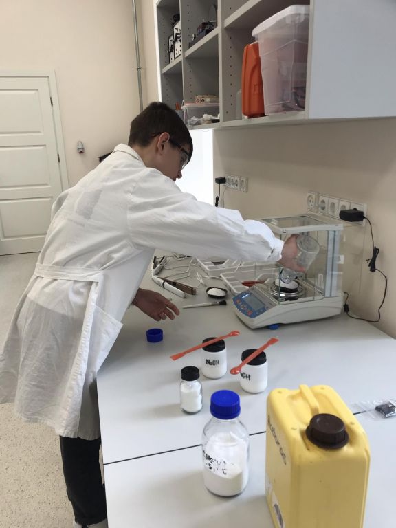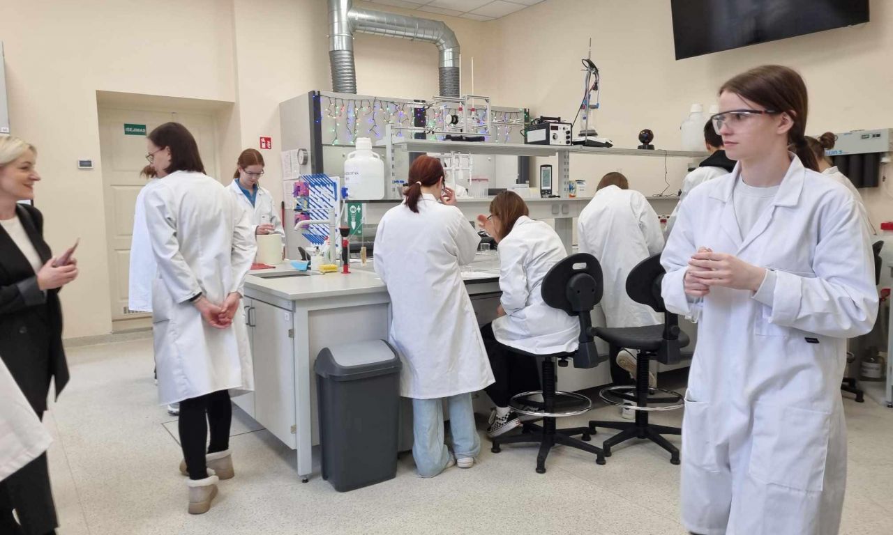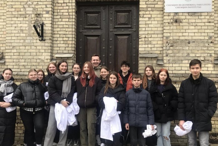 Kovo 18-tą dieną 8, IG, IIG ir IVG klasių mokiniai aplankėme Vilniaus universiteto chemijos ir geomokslų fakulteto didaktikos centrą. Susipažinę su nauja aplinka, išklausę instrukcijų, atlikome 3 įdomius praktikos darbus: egzoterminių, endoterminių reakcijų pagrindu patys pagaminome rankų šildytuvą, atlikome pusiausvyros krypties priklausomybės nuo temperatūros ir koncentracijos bei tirpalų elektrolizės tyrimus.