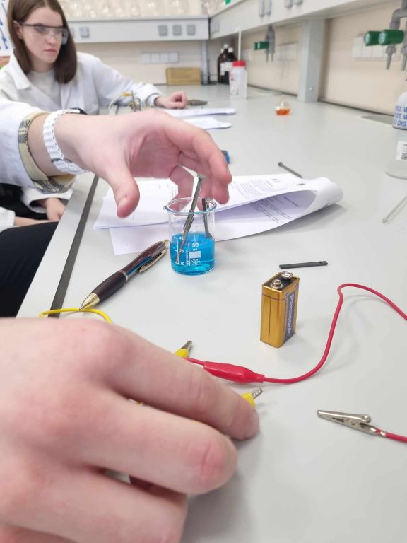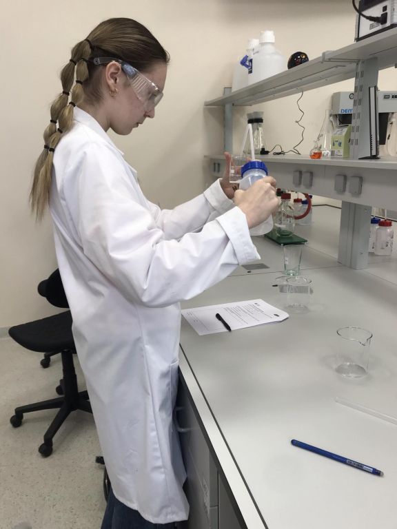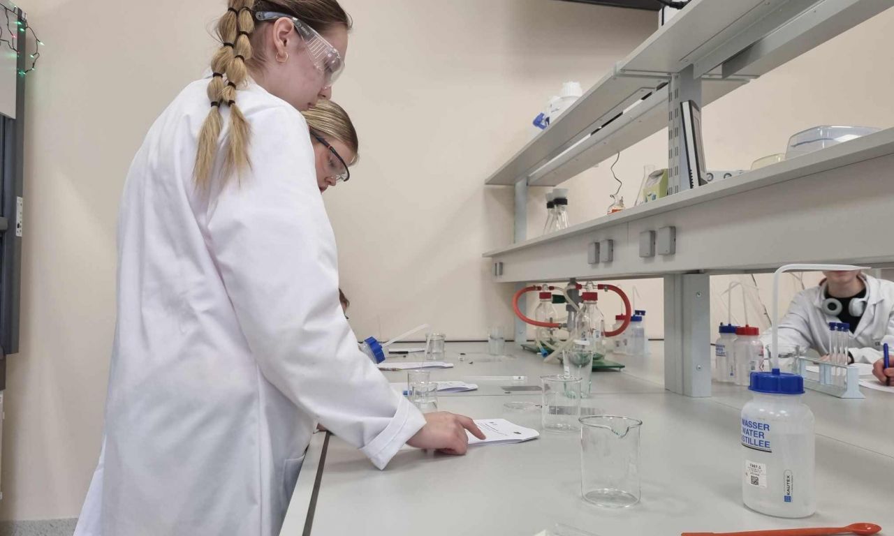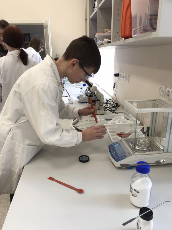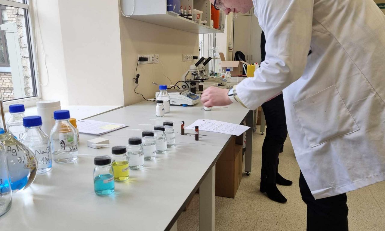 Kovo 18-tą dieną 8, IG, IIG ir IVG klasių mokiniai aplankėme Vilniaus universiteto chemijos ir geomokslų fakulteto didaktikos centrą. Susipažinę su nauja aplinka, išklausę instrukcijų, atlikome 3 įdomius praktikos darbus: egzoterminių, endoterminių reakcijų pagrindu patys pagaminome rankų šildytuvą, atlikome pusiausvyros krypties priklausomybės nuo temperatūros ir koncentracijos bei tirpalų elektrolizės tyrimus.