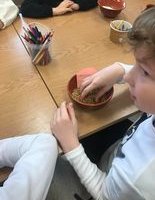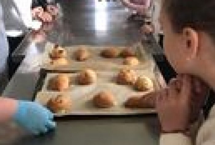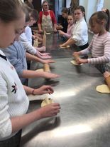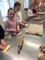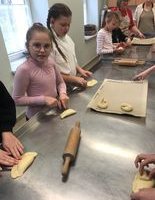 Išklausę edukatorės patarimus, pamokymus, ketvirtokai nusiplovė rankeles, iškočiojo bandeles, sulipdė norimos formos bandelę, įdėjo saldžios varškės įdaro, užsimerkę pakuždėjo norą ir - bandelės buvo pašautos į pečių kepti.