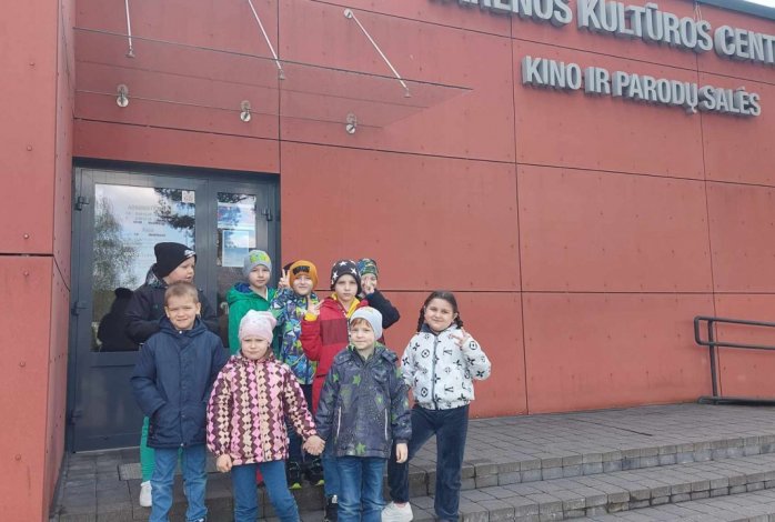 Balandžio 26 d. priešmokyklinio ugdymo grupės vaikučiai išsiruošė į pirmąją kelionę mokykliniu autobusu. Šios dienos laukė nekantriai – važiavome į Varėnos kultūros centro kino ir parodų salę žiūrėti filmo „Raganosis Rino“. Išvyka priešmokyklinukams paliko daug įspūdžių, nes kai kurie važiavo pirmą kartą autobusu, o dauguma pirmą kartą buvo kine. Visai šeimai skirtas filmas apie Afrikos gyvūnus, o pagrindinis - herojus raganosiukas Rino.