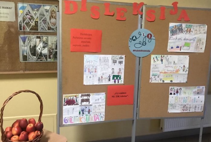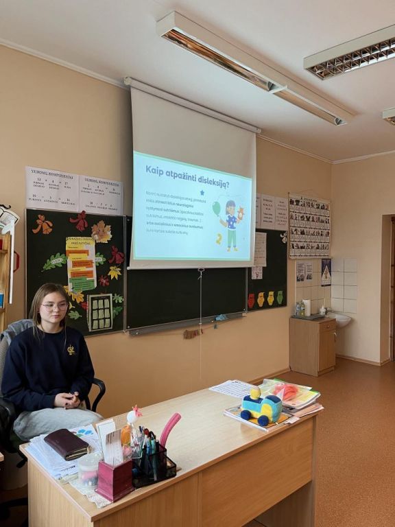Jau kelintus metus spalio mėnesį gimnazijos bendruomenė jungiasi prie Disleksijos centro iniciatyvos „Spalis - disleksijos pažinimo ir supratimo mėnuo“. Šiemet spalio 2-11 dienomis organizavome įvairius renginius, edukuojant mokinius DISLEKSIJOS tema. Gimnazijos logopedė Olga Kaziukevičienė, IIGa kl. mokinė Kornelija Kucevič- Kurkulionytė, IIIG kl. mokinė Augustė Kaziukevičiūtė diskusijose pristatė disleksijos sutrikimo priežastis, būdingus požymius, sukeliamus iššūkius, inovatyvias priemones, įtraukius būdus bei metodus, kurie palengvintų vaiko, turinčio šį sutrikimą mokymąsi. Akcentavome, jog bendravimas, bendradarbiavimas, tinkama emocinė parama gali pagerinti kiekvieno savijautą ir suteikti galimybių patirti sėkmę.