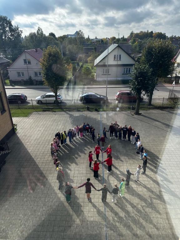 Spalio 10 d. gimnazijos kieme mokiniai šoko šokį, skirtą tarptautinei DISLEKSIJOS dienai.