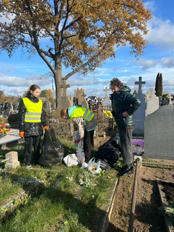 Artėjant tradicinėms katalikų šventėms - Visų Šventųjų dienai ir Vėlinėms - spalio 28 d. mūsų gimnazijos bendruomenė dalyvavo kasmetinėje pilietinėje akcijoje „Vėlinių žvakė ant kiekvieno kapo“, kurią inicijavo ir organizavo Mokinių taryba. Akcijos tikslas – prisiminti ir pagerbti mirusiuosius, sutvarkyti apleistus Eišiškių miestelio kapinėse esančius kapus ir ant kiekvieno jų uždegti žvakelę, kurios šviesa – amžinybės ir vilties simbolis. Nemažas mokinių ir mokytojų būrys tądien susibūrė geriems ir prasmingiems darbams. Nuoširdžiai tvarkėme užmirštus kapus, degėme paaukotas žvakeles, o mus visus jungė bendrystės jausmas, geraširdiškumas, rimtis.