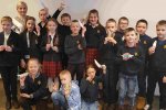 Kovo10 d. priešmokyklinukai, pradinukai ir mokytojos susirinko į gimnazijos aktų salę paminėti Kovo 11-osios dienos. Visi iškilmingai ir drąsiai sugiedojome Lietuvos himną.