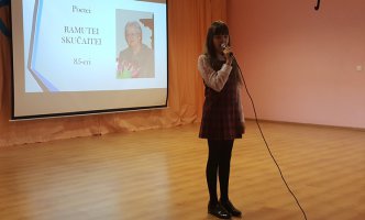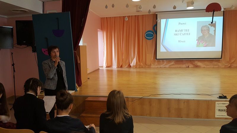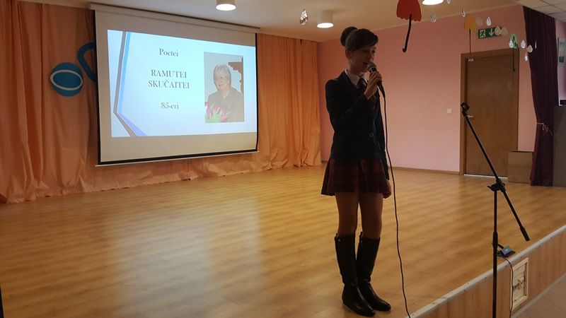 Spalio 27 dieną poetė Ramutė Skučaitė šventė savo 85-ąjį gimtadienį. Mūsų gimnazijos mokiniai šią ypatingą sukaktį pažymėjo skaitydami jos gražius eilėraščius.