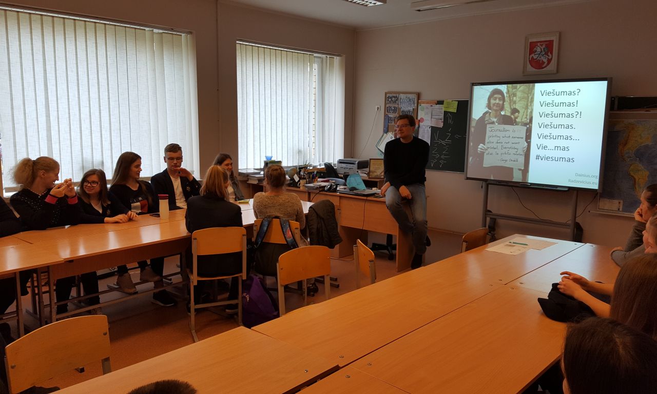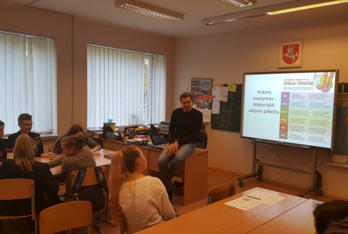 Aptarėme saugaus medijų naudojimo galimybes, asmens duomenų apsaugą ir privatumą. IIG bei IIIG klasių gimnazistai kalbėjosi tema „Kritinis mąstymas – būdas būti aktyviu piliečiu“. Jaunuoliai aktyviai diskutavo, pateikė nemažai savo asmeninės patirties pavyzdžių. Kilo aštrios diskusijos dėl , atrodo, labai paprastų dalykų.
