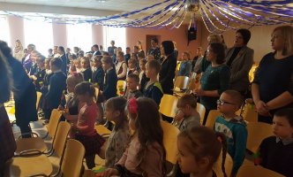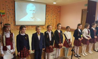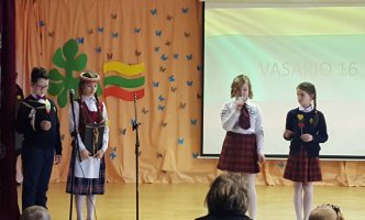 Vasario 15 dieną mūsų gimnazijos aktų salėje vyko šventė, skirta Lietuvos valstybės atkūrimo 100-čiui, į kurią susirinko priešmokyklinio ugdymo ir pradinių klasių mokiniai, mokytojai, tėveliai. Šventę pradėjome eilėraščiu apie Vasario 16-osios šventę. Po gražaus ir prasmingo eilėraščio akomponuojant muzikos mokytojai J.Sinkevič iškilmingai sugiedojome Lietuvos himną. Giedodami himną pradinių klasių mokiniai, kurie puikiai ir labai gerai baigė pirmąjį pusmetį, išdidžiai laikė Lietuvos trispalvę.