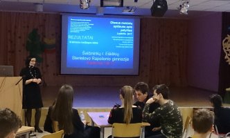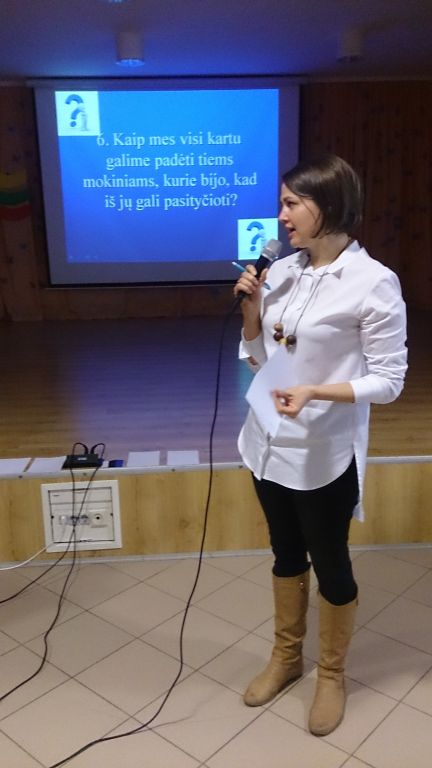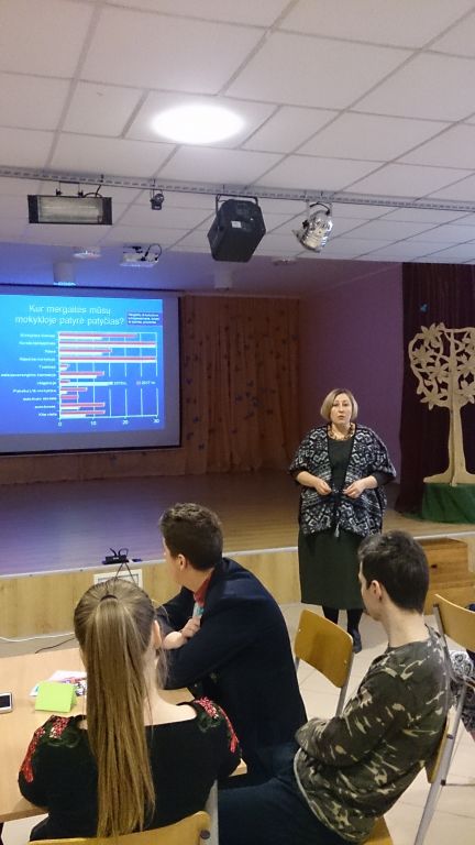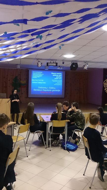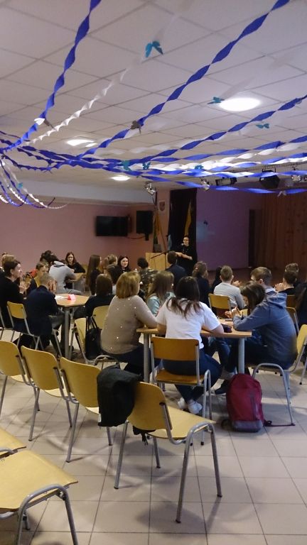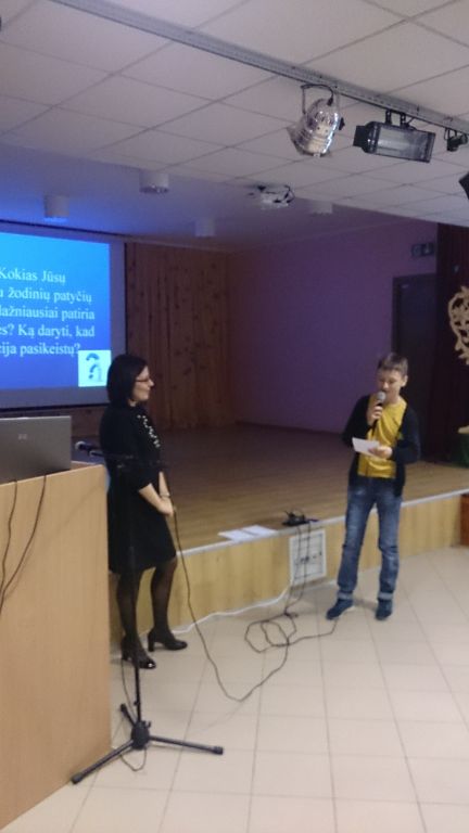 Veiksmo savaitei BE PATYČIŲ įsibėgėjus, organizavome ir pravedėme diskusiją su Mokinių taryba „Patyčių situacija mūsų gimnazijoje“. Diskusijoje buvo nagrinėjami klausimai, susiję su paskutiniuoju OLWEUS PPP tyrimu, kuriame dalyvavo 3-8, I-IIIG klasių mokiniai. Smagu, kad kartu su mokiniais diskutavo ir tėvai! Nors OLWEUS PPP vykdome nuo 2015 metų ir paskutiniojo tyrimo duomenimis patyčių sumažėjo 36 procentais, patyčių klausimas tebelieka aktualus. Taigi, padiskutavę nusprendėme, jog nenuleisime rankų ir toliau nuoširdžiai tęsime darbus įgyvendindami OLWEUS programą.