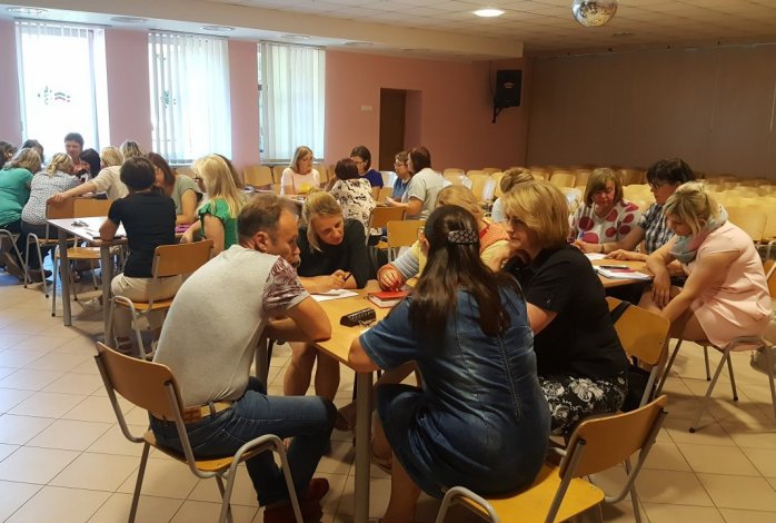 2018 06 21 d. mūsų gimnazijos mokytojai susirinko į kasmet Metodinės Tarybos organizuojamą „METODINIŲ IDĖJŲ MUGĘ“ . Šį kartą mugė buvo skirta SLURŠ programos mūsų gimnazijoje vykdymui. Savo metodinėmis idėjomis pasidalino visų metodinių grupių nariai. Mokytojai dalinosi savo gerąja patirtimi, kalbėjo apie sėkmes ir sunkumus, pateikė konkrečių veiklų pavyzdžius, pasidžiaugė pasiekimais. Kalbėjo apie SLURŠ programos poreikį. Mokymų medžiaga pasidalijo gimnazijos psichologė R.Česokienė. Netrūko ir praktinių užsiėmimų. Visi kartu numatėme gaires kitiems mokslo metams.