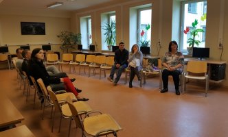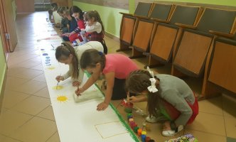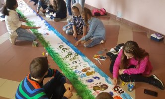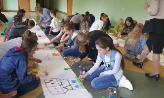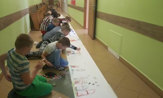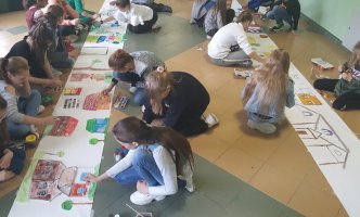 Po visų edukacinių veiklų piešėme ant savo gimnazijos koridoriuose patiestų popieriaus lapų. Tema vėl jungė ir jauną, ir seną: „Visur gerai – namie geriausia“. Nors oras lauke buvo apniukęs ir žvarbus, viduje, skambant muzikai iš visiems piešiant, buvo šilta ir jauku!