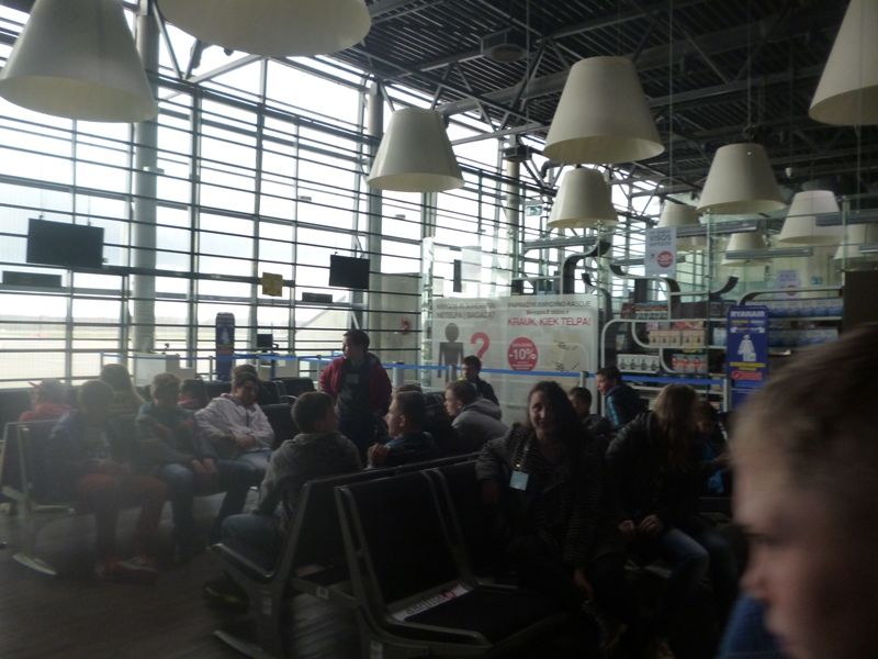 Vėliau praėjome asmens bei turimų daiktų patikrą. Susipažinome su saugos tarnybos darbuotojų pareigomis bei įrenginiais. Palaukėme laukimo salėje, kol atvažiuos autobusas. Visi tapome oro uosto keleiviais, nes autobusas mus nuvežė į „pakilimo-nusileidimo“ taką. Parodė, ką mato lėktuvo, kuris leidžiasi, pilotas. Visas „pakilimo-nusileidimo“ takas buvo apšviestas skirtingų spalvų švieselėmis. Labai įspūdingas vaizdas. Mums labai pasisekė: realiu laiku ir iš arti stebėjome lėktuvo nusileidimą. Turėjome puikią galimybę nusifotografuoti prie stovėjimo aikštelėje stovinčio lėktuvo.