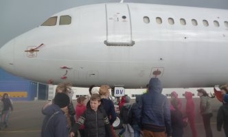 Vėliau nuvykome prie angaro, kur remontuojami lėktuvai. Gidams paprašius, mums leido įeiti į vidų. O ten pamatėme 4 remontuojamus lėktuvus. Gidai papasakojo apie lėktuvų remontą ir darbų atlikimo specifiką. Sužinojome, kad kiekvienas specialistas atlieka tik vieną darbą, t.y. jei darbuotojas atlieka sparno remontą, tai variklio jis jau remontuoti negali.