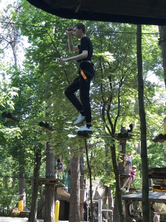 Po veiklų universitete išvyka tęsėsi Vilniaus UNO PARKE, kur mokiniai surado atokvėpį, aštrius įspūdžius, pasimėgavo pramogomis bei susipažino su laipiojimo medžiuose filosofijos atspindžiu: laisve gyventi klausant savo širdies, drąsa peržengti savo ribas ir pasitikėti pasauliu aplink, augti ne tik įveikiant kliūtis, bet ir priimant tai, kas stipriau už mus.