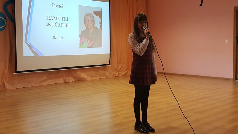 Spalio 27 dieną poetė Ramutė Skučaitė šventė savo 85-ąjį gimtadienį. Mūsų gimnazijos mokiniai šią ypatingą sukaktį pažymėjo skaitydami jos gražius eilėraščius.