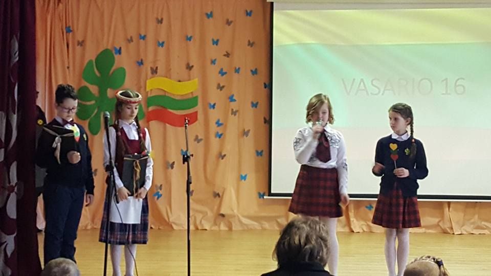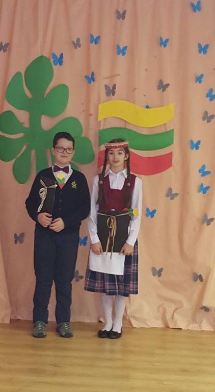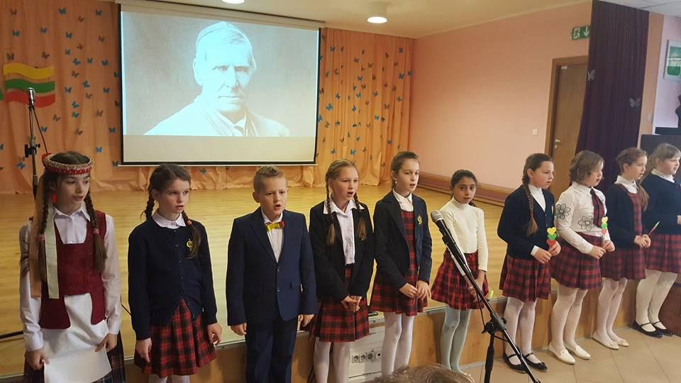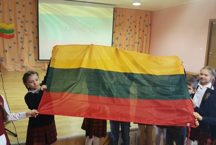 Vasario 15 dieną mūsų gimnazijos aktų salėje vyko šventė, skirta Lietuvos valstybės atkūrimo 100-čiui, į kurią susirinko priešmokyklinio ugdymo ir pradinių klasių mokiniai, mokytojai, tėveliai. Šventę pradėjome eilėraščiu apie Vasario 16-osios šventę. Po gražaus ir prasmingo eilėraščio akomponuojant muzikos mokytojai J.Sinkevič iškilmingai sugiedojome Lietuvos himną. Giedodami himną pradinių klasių mokiniai, kurie puikiai ir labai gerai baigė pirmąjį pusmetį, išdidžiai laikė Lietuvos trispalvę.