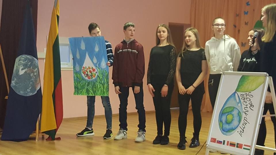 Paminėjome ir Vandens dieną. Kiekviena klasė piešė plakatą, skirtą Pasaulinei Vandens dienai paminėti. Tai buvo projekto Erasmus + „Love every drop“ (Mylėk kiekvieną lašą) dalis.