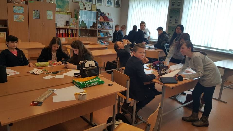 Vėliau veiklos vyko klasėse su klasių vadovais: mokiniai viktorinai ruošė klasės komandos šūkį, pavadinimą, gamino įvairių Europos valstybių vėliavėles, kuriomis pasipuošė šokdami bendrą šokį Žemei. Šokis Žemei –meno forma, kuri puikiai suprantama įvairių tautų žmonėms, bei puikus būdas atkreipti visų mūsų dėmesį į gamtosaugos problemas.