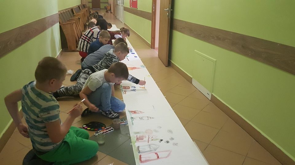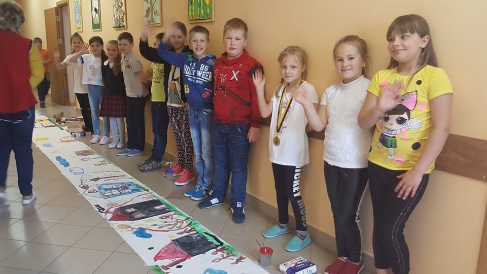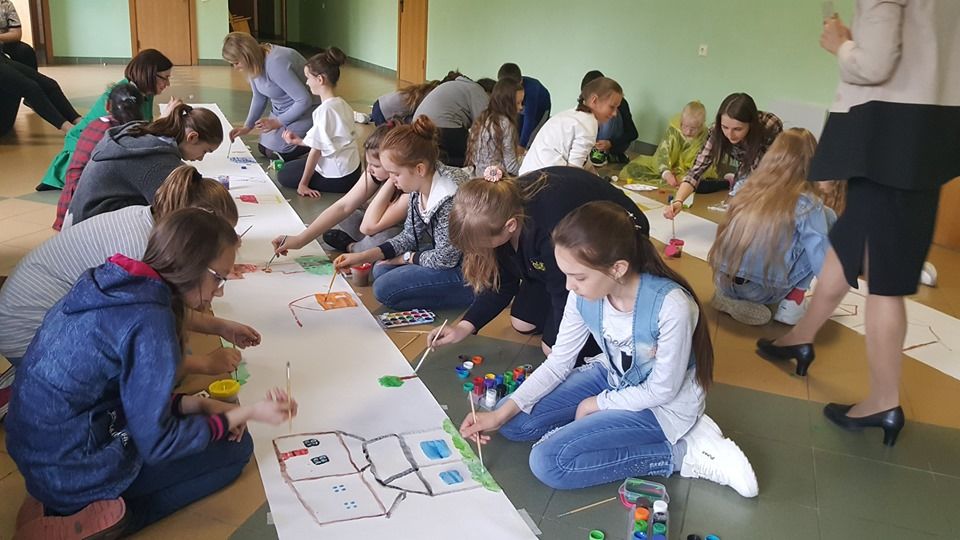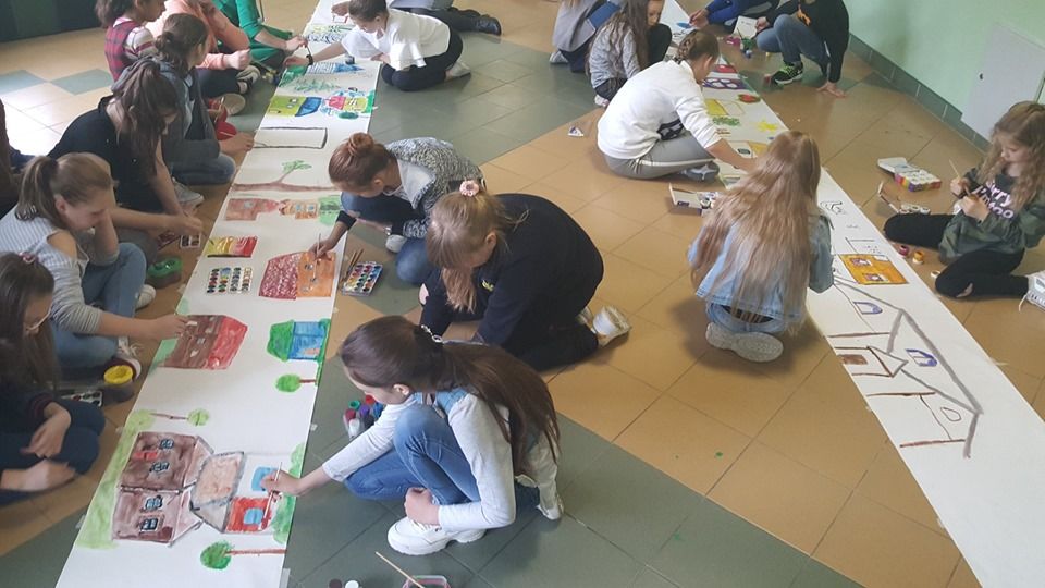 Po visų edukacinių veiklų piešėme ant savo gimnazijos koridoriuose patiestų popieriaus lapų. Tema vėl jungė ir jauną, ir seną: „Visur gerai – namie geriausia“. Nors oras lauke buvo apniukęs ir žvarbus, viduje, skambant muzikai iš visiems piešiant, buvo šilta ir jauku!